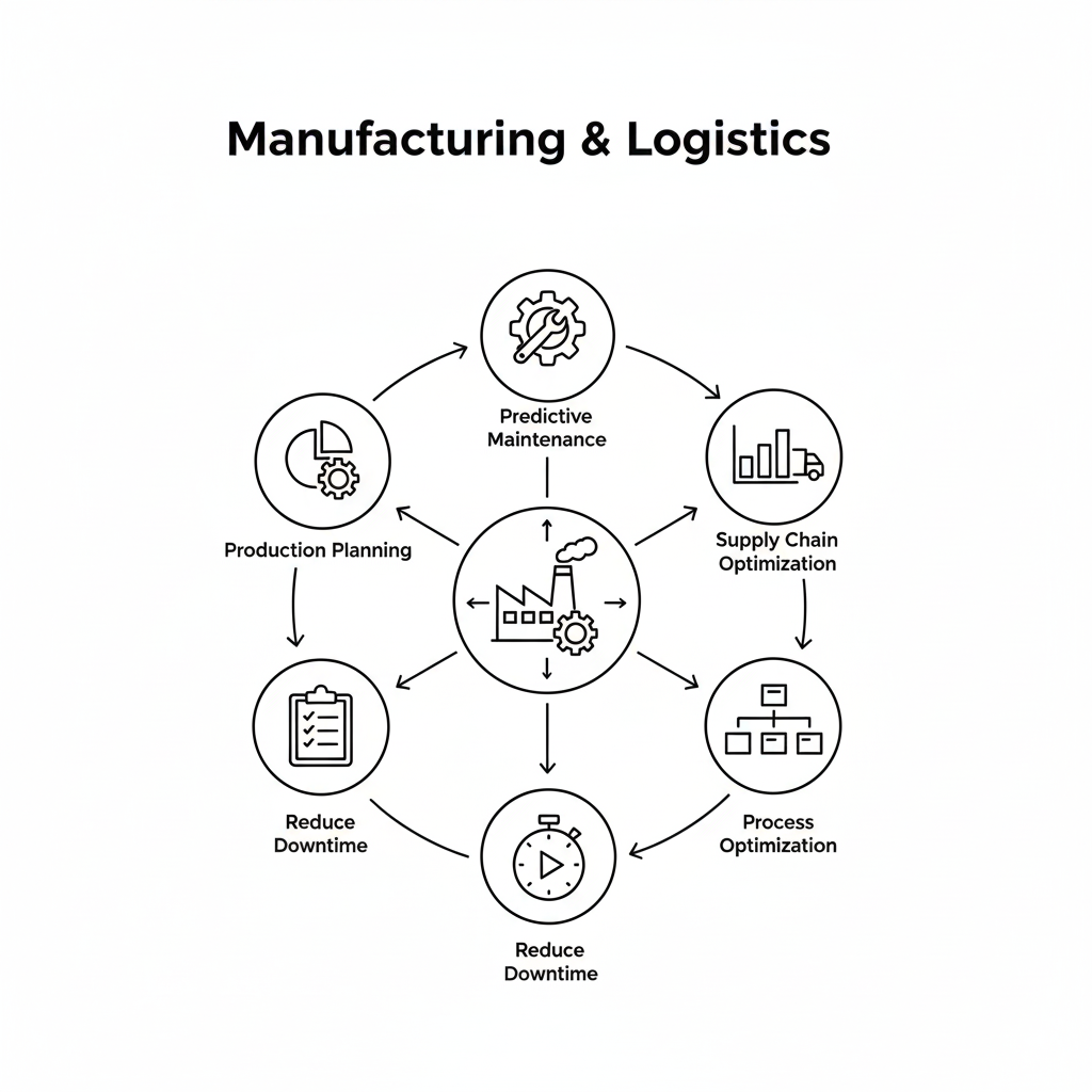 Ellvero’s solutions enable predictive maintenance, process optimization, and demand forecasting for manufacturers and logistics firms.